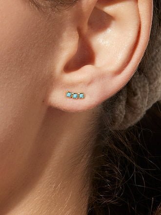 925 Silver Three Stone Stud Earrings