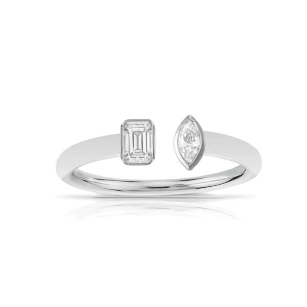 925 Silver Multi-shape Double Row Diamond Statement Ring