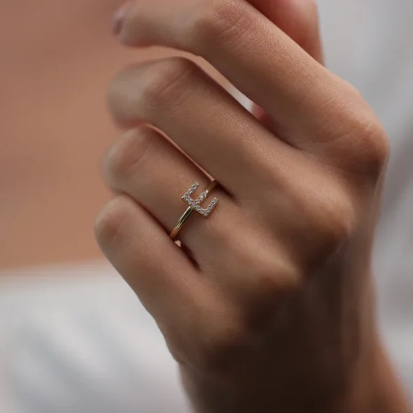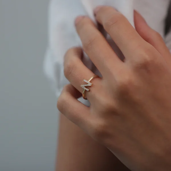 925 Silver Initial Letter Diamond Ring