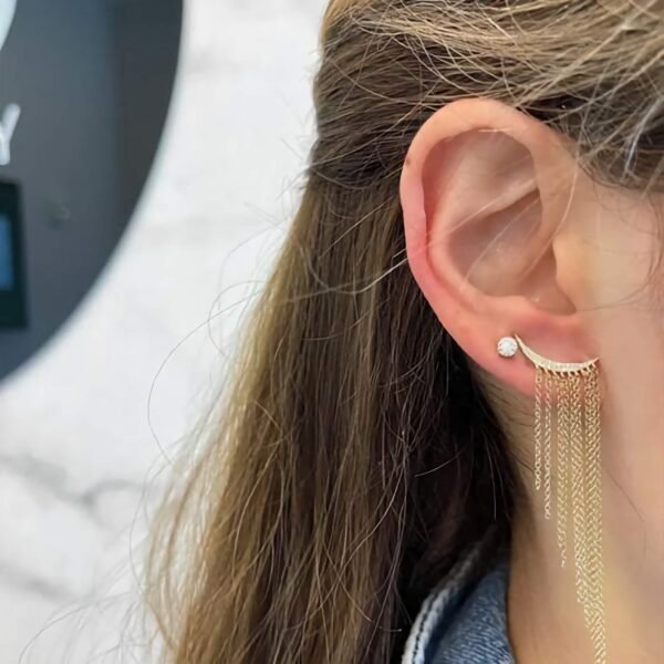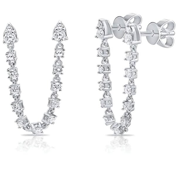 925 Silver Double Huggies Diamond Chain Earrings