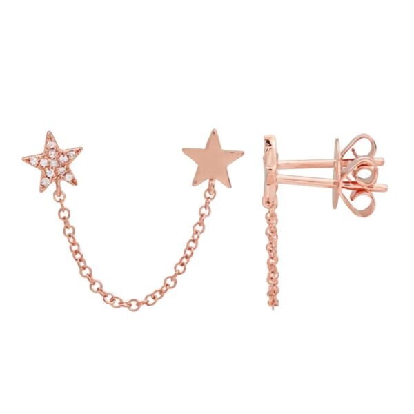 925 Silver Double Star Pave Chain Earring