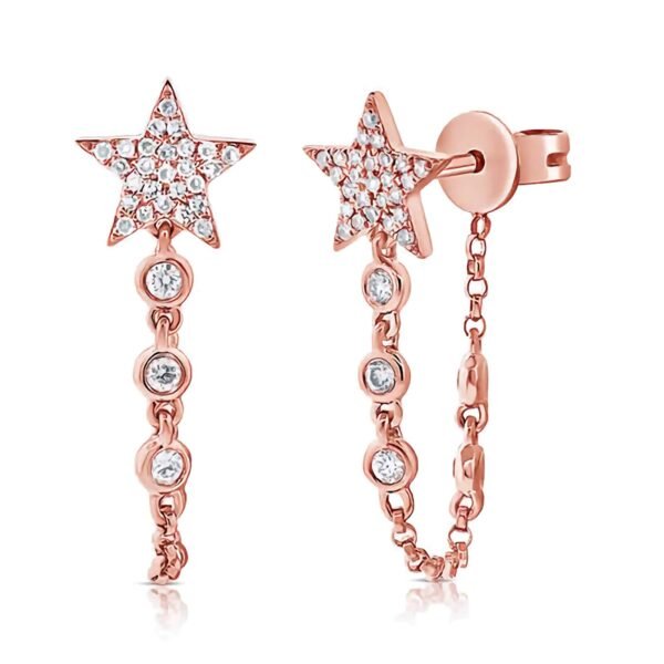 925 Silver Star Bezel Drop Chain Earrings