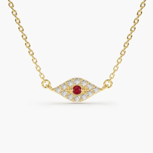 925 Silver Diamond and Ruby Evil Eye Necklace