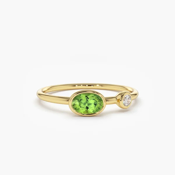925 Silver Peridot and Diamond Ring