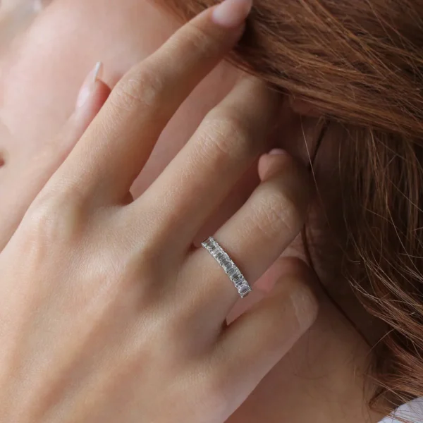 925 Silver 1 Carat Emerald Cut Diamond Wedding Band