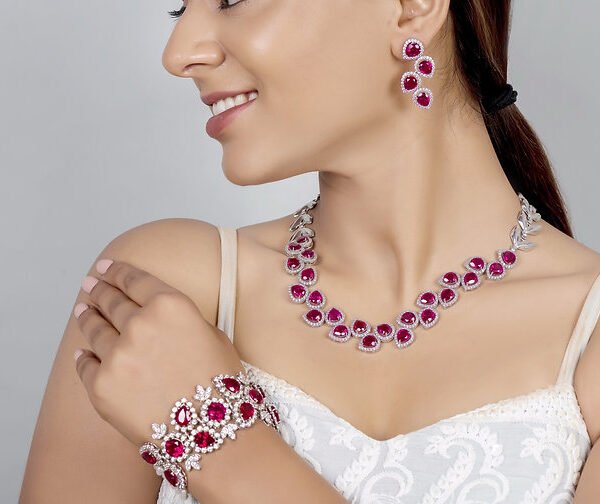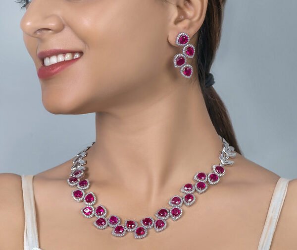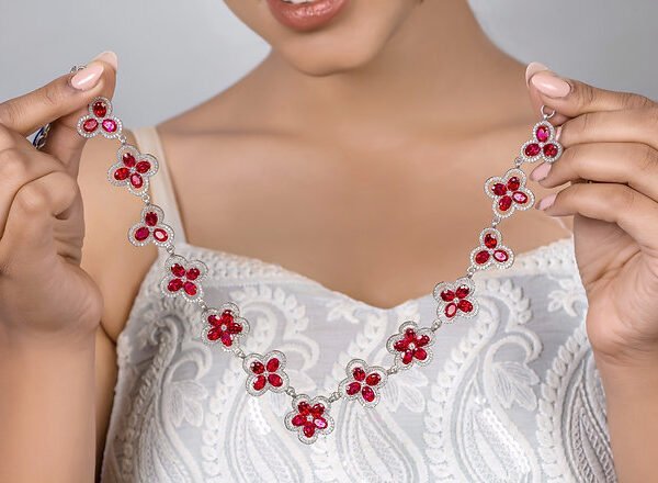925 Silver Ruby Floral Necklace Set