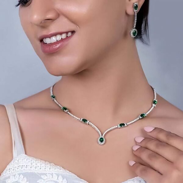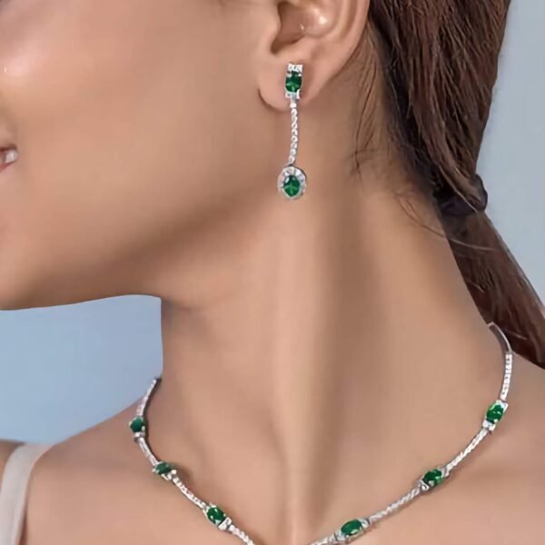 925 Silver Emerald Necklace Set