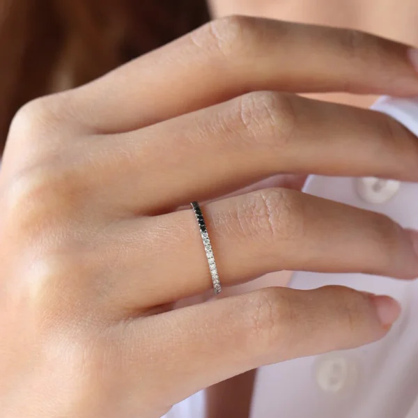 925 Silver Black & White Diamond Eternity Band