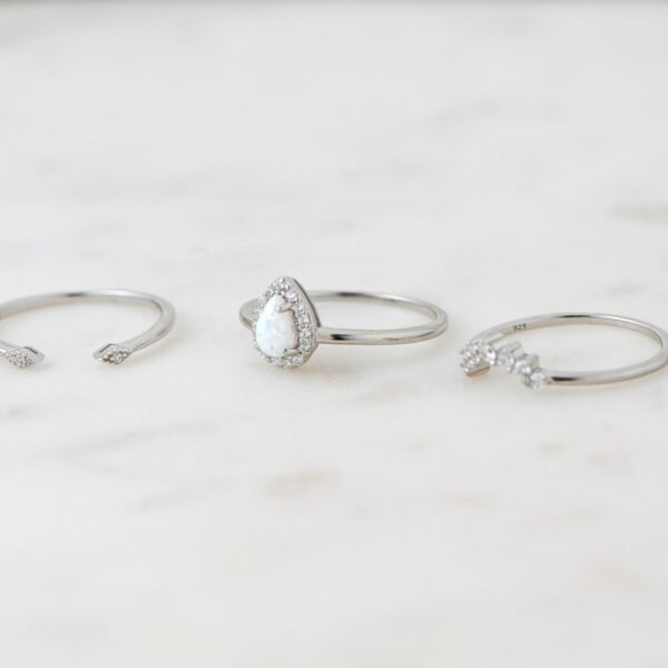 925 Silver Pear Opal Ring Set