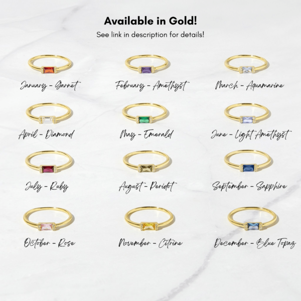 925 Silver Simple Baguette Birthstone Rings