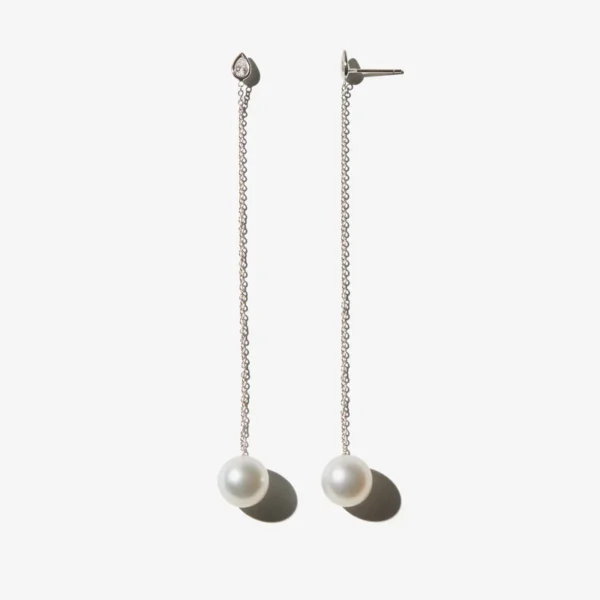 925 Silver Pearl Diamond Long Drop Earrings