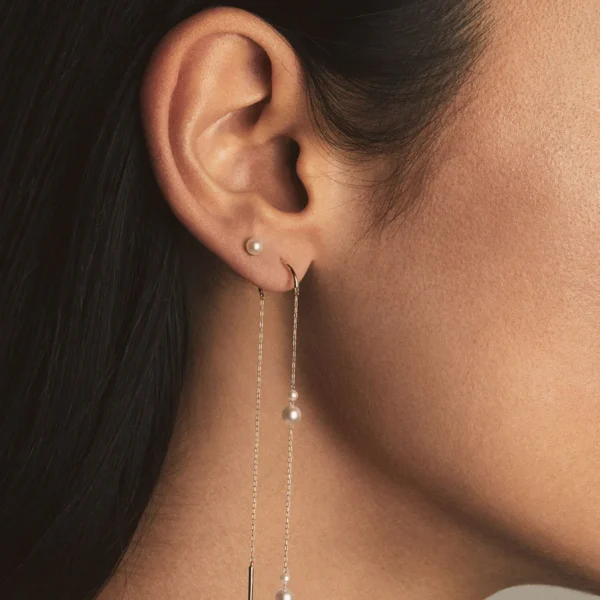 925 Silver Double Pearl Long Threader Earrings