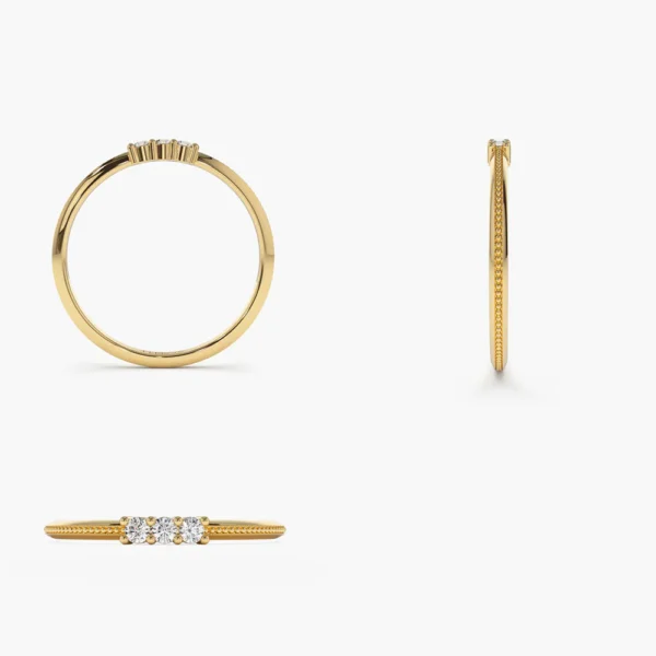 925 Silver 3 Stone Beaded Diamond Ring