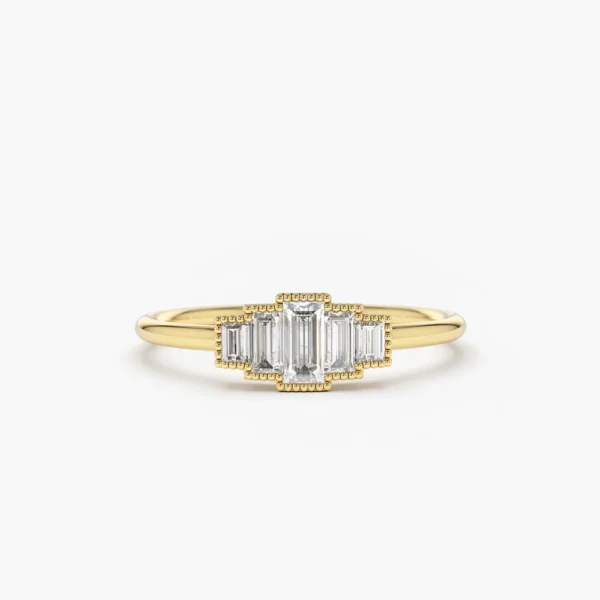 925 Silver 7 Stone Slanted Baguette Diamond Ring