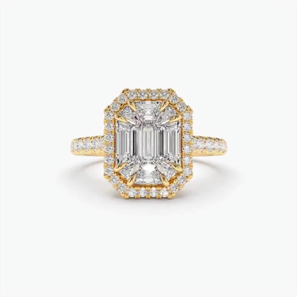 925 Silver Emerald Cut Illusion Halo Setting Solitaire Engagement Ring
