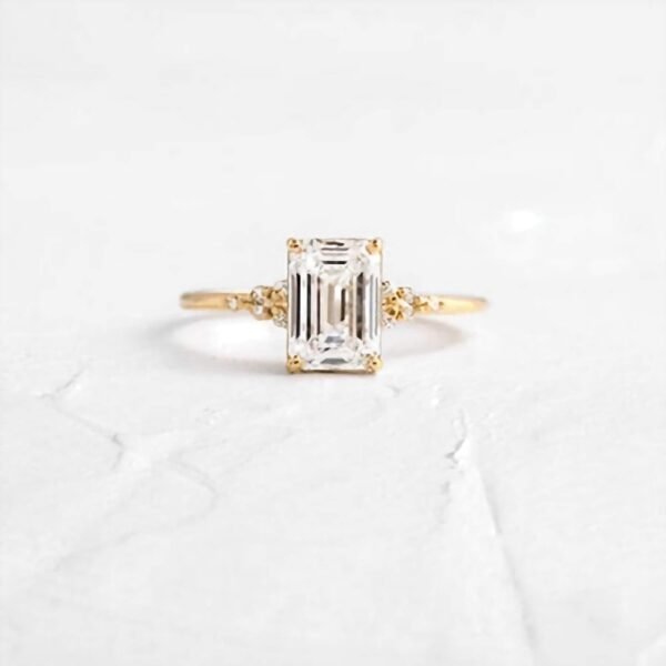 925 Silver 1CT Emerald Cut Diamond Engagement Ring