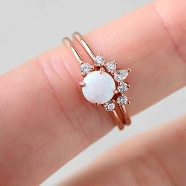 925 Silver Opal Ring Set with Pave Band