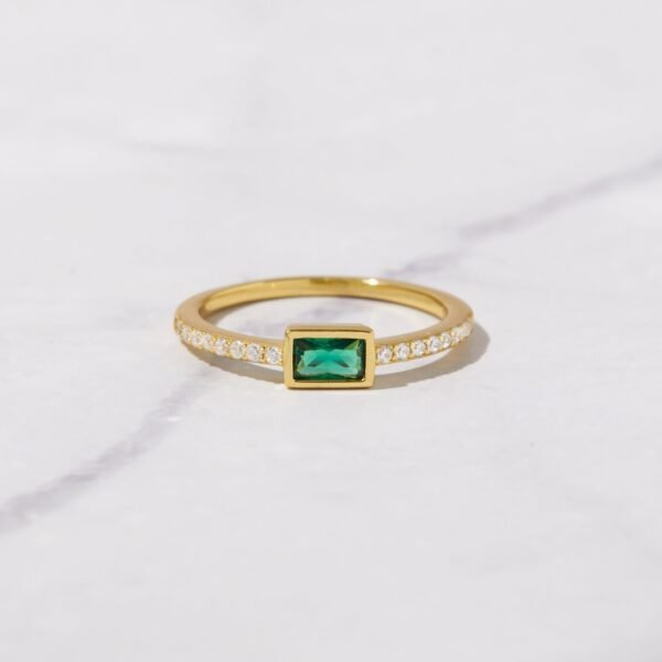925 Silver Emerald Baguette Ring