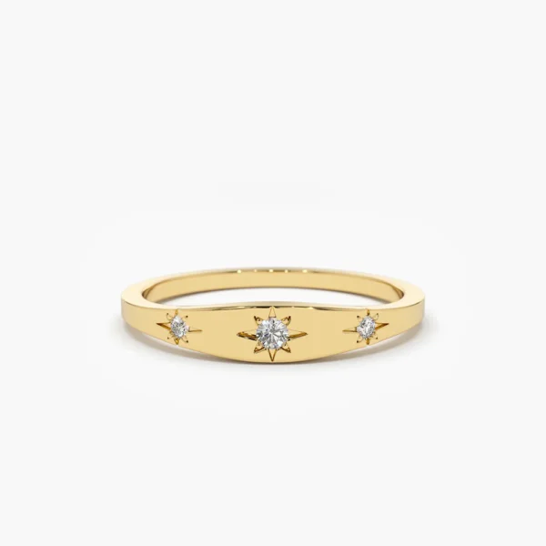 925 Silver Star Setting 3 Diamond Stacking Ring