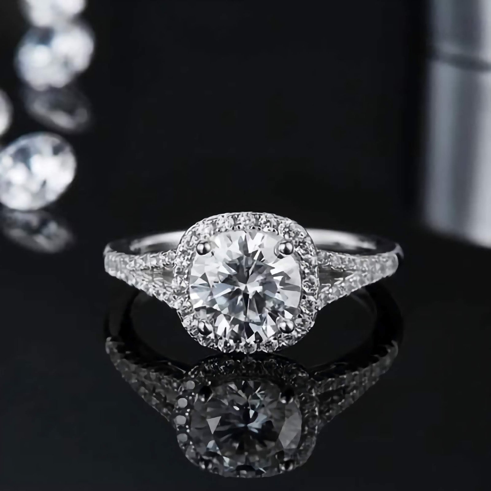 925 Silver 2Ct Round Cut Diamond Engagement Ring