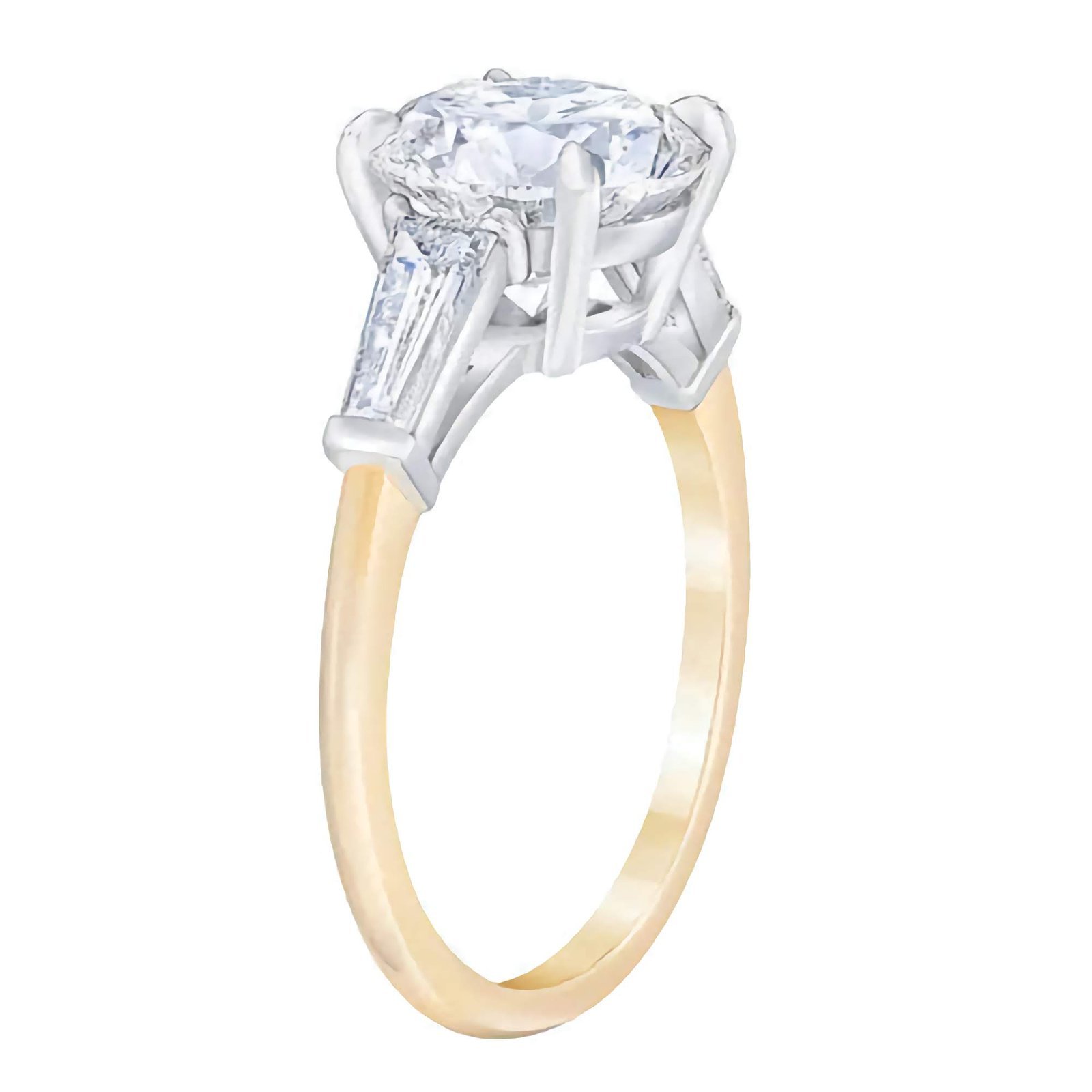 Bold and brilliant 3ct solitaire ring in 925 Silver, finished with gold plating and a radiant Cubic Zirconia. Hypoallergenic and engagement-ready.