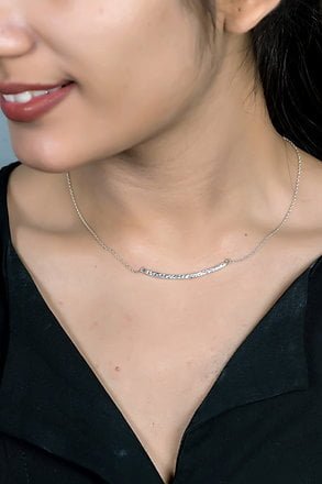 Understated with an artisanal touch, the 925 Sterling Silver Hammered Bar Pendant is a modern classic designed for everyday elegance. Made from premium 925 sterling silver, this pendant features a sleek vertical bar with a hammered texture that adds depth, dimension, and a handcrafted appeal. Subtly adorned with the highest-grade Cubic Zirconia stones, it offers a gentle sparkle that complements its minimalist silhouette.