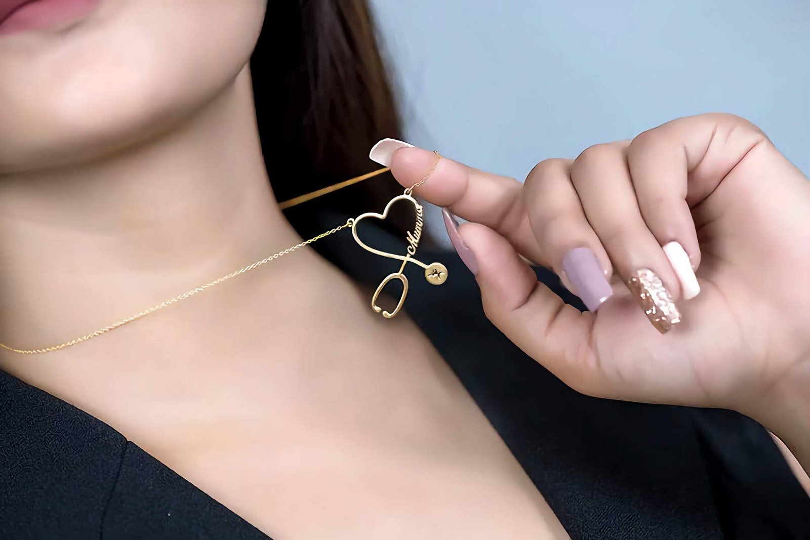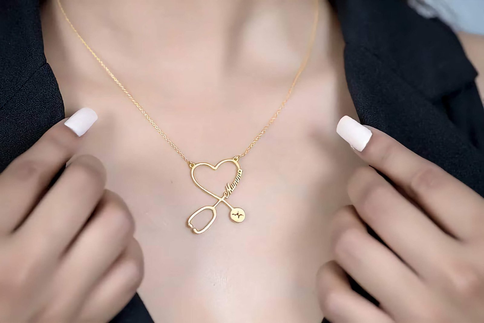 The design features a delicately shaped stethoscope that forms a heart, accented with high-grade, diamond-like cubic zirconia for a soft, radiant sparkle. Whether you’re honoring a medical professional, commemorating a personal milestone, or expressing gratitude, this necklace makes a heartfelt and thoughtful statement.