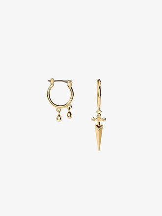 Stand out with the 925 Silver Mismatched Hoop Earrings, crafted in sterling silver, gold plated, and adorned with sparkling cubic zirconia.