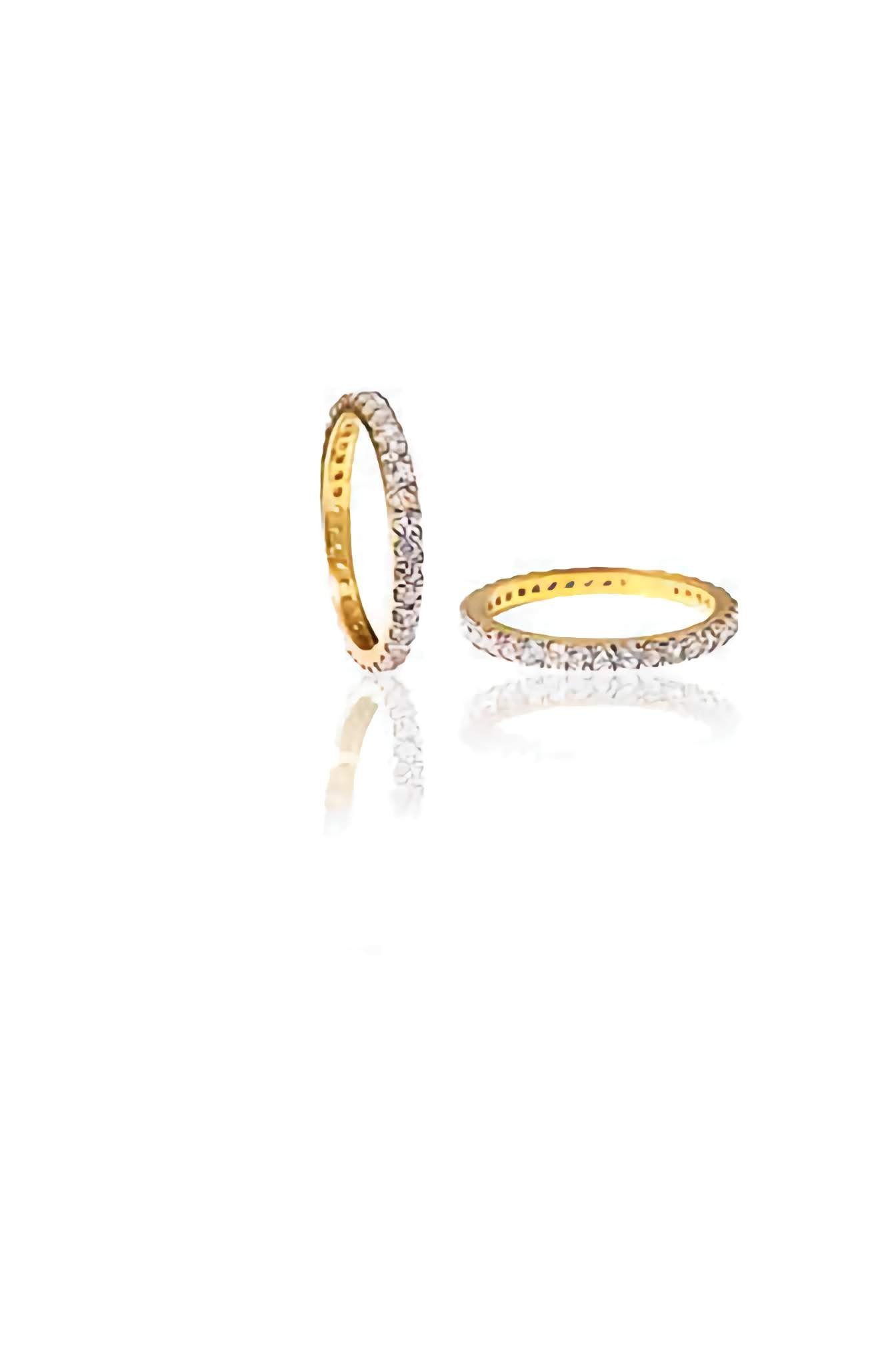 925 silver eternity ring with full-circle CZ sparkle. Plated in 14K gold or rose gold. Hypoallergenic, elegant, and timeless. Ships in 7–8 business days.