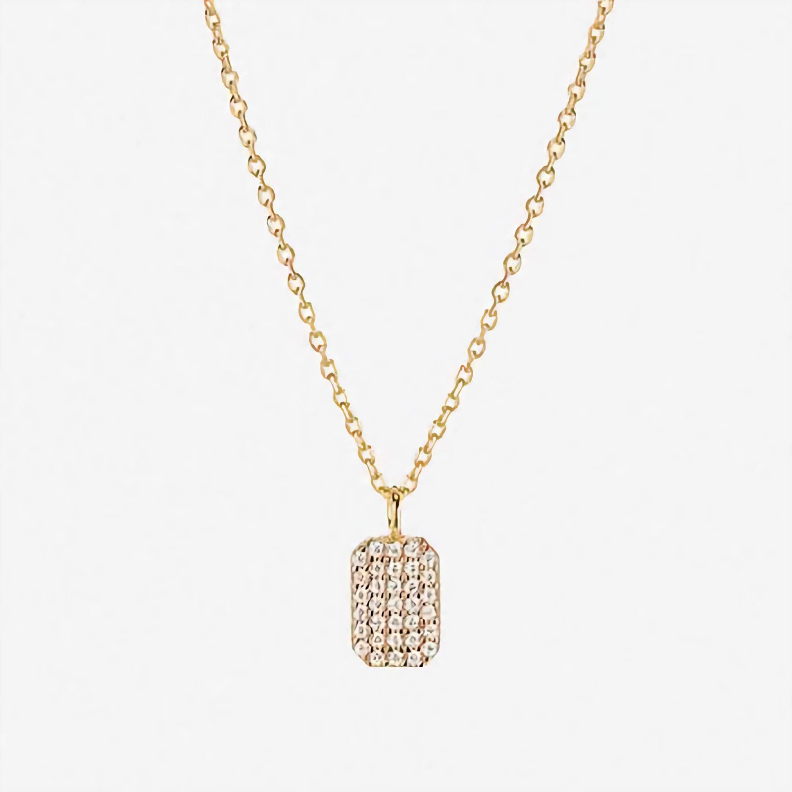 Its sleek tag shape provides a perfect canvas for personalization, whether engraved with initials, meaningful dates, or symbols. To elevate its charm, the pendant is adorned with high-grade, diamond-like cubic zirconia, adding just the right amount of brilliance for a sophisticated yet minimal look.