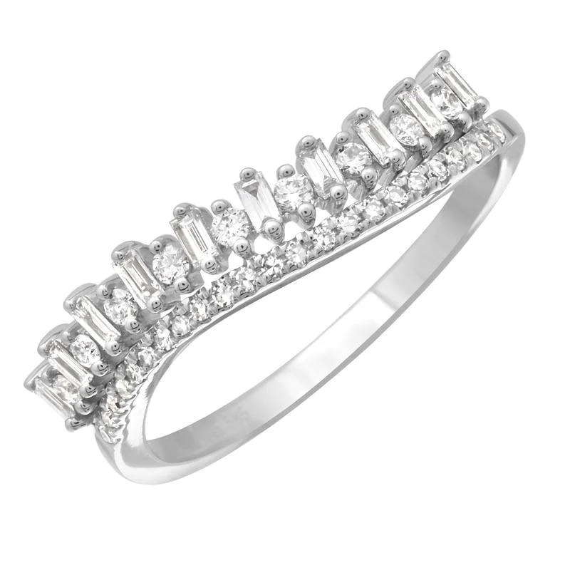 925 Silver Baguette Wave Diamond Ring