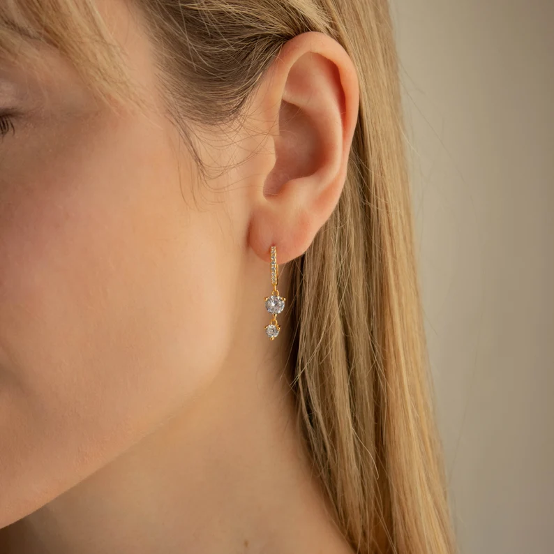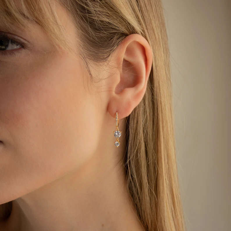 Designed for everyday elegance, these earrings are adorned with the highest-grade cubic zirconia, providing a dazzling, diamond-like sparkle. Lightweight, nickel-free, and hypoallergenic, they ensure maximum comfort, making them perfect for sensitive skin. Whether worn solo for a minimalistic look or layered with other earrings for a trendy ear stack, the Caroline Huggies add a refined sparkle to any style.