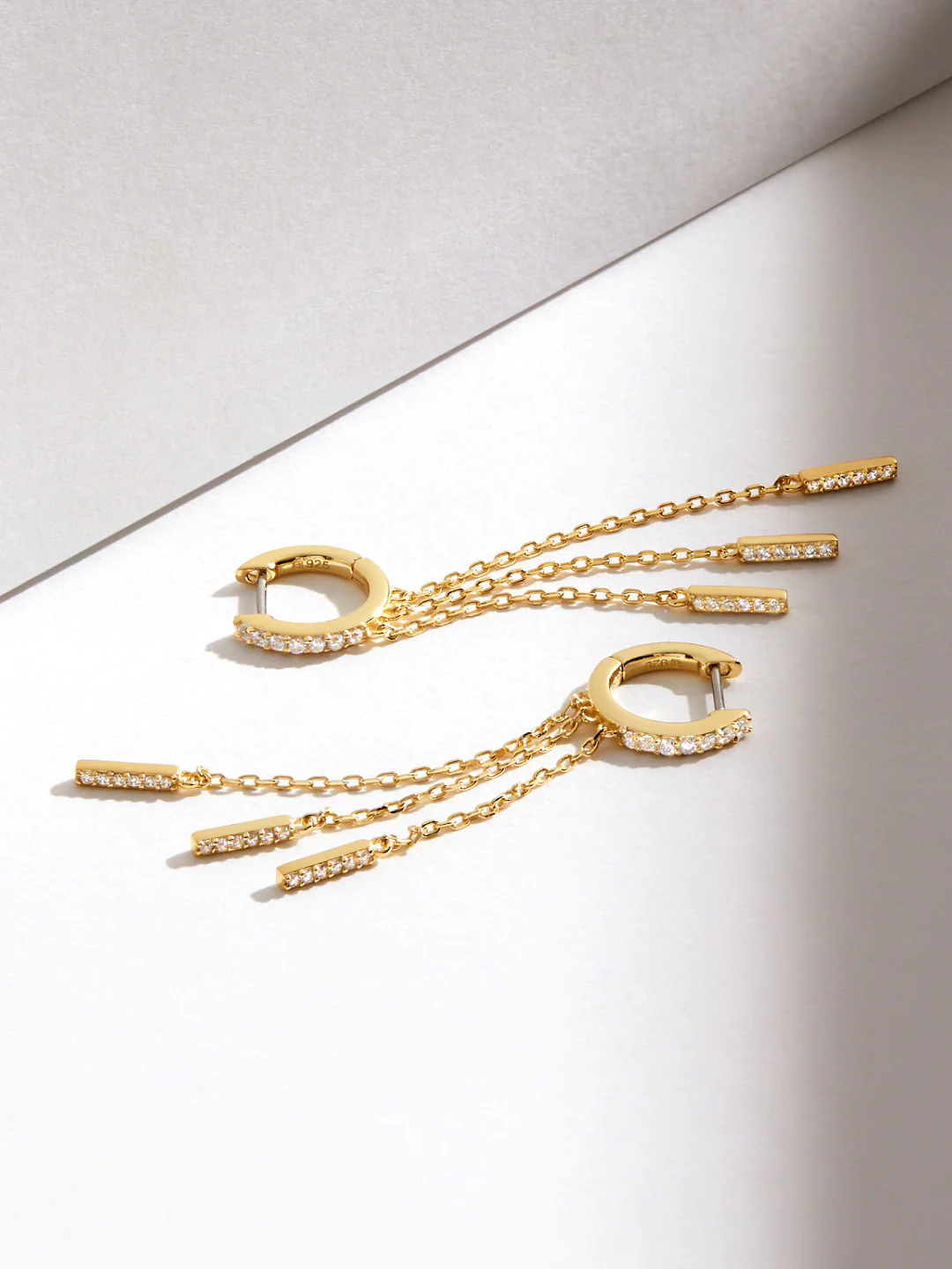 925 sterling silver Chiara hoop earrings with sparkling cubic zirconia. Finished with thick 14K gold or rose gold plating. Hypoallergenic. Ships in 7–8 business days.