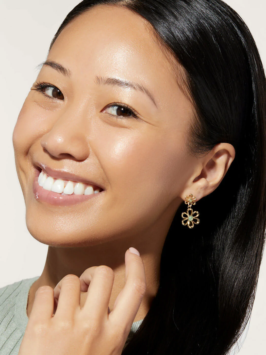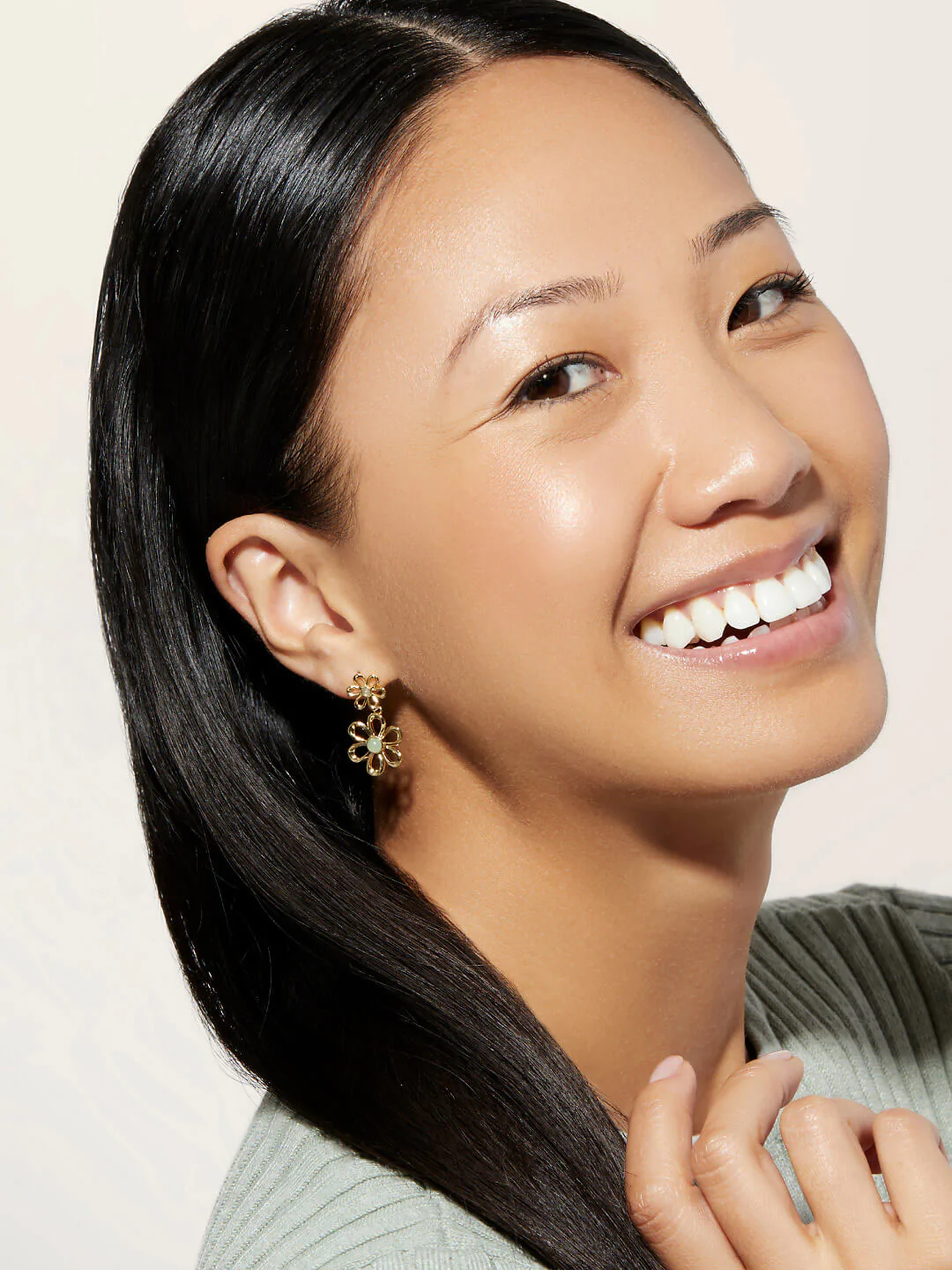 925 sterling silver Clementine earrings with sparkling cubic zirconia. Finished with thick 14K gold or rose gold plating. Hypoallergenic. Ships in 7–8 business days.