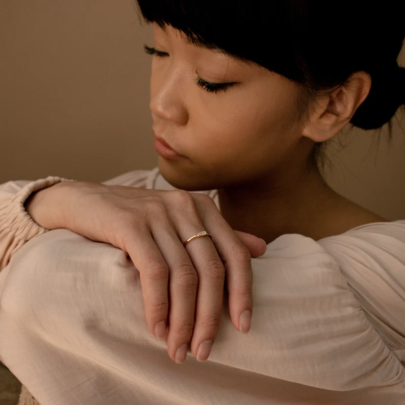 Set with the highest-grade Cubic Zirconia stones, the ring radiates a brilliant, diamond-like sparkle that catches the light beautifully with every movement. Designed to be nickel-free and hypoallergenic, it provides exceptional comfort, making it perfect even for sensitive skin. Ideal for stacking, gifting, or wearing solo as a chic everyday statement, this dainty ring adds just the right touch of sparkle to any look. Each piece is carefully Product Details: