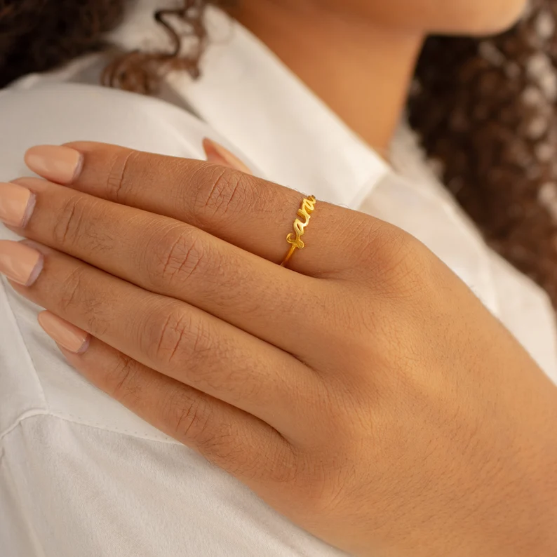 Whether as a thoughtful gift or a personal keepsake, the Dainty Name Ring is a timeless piece that combines elegance and sentimentality.