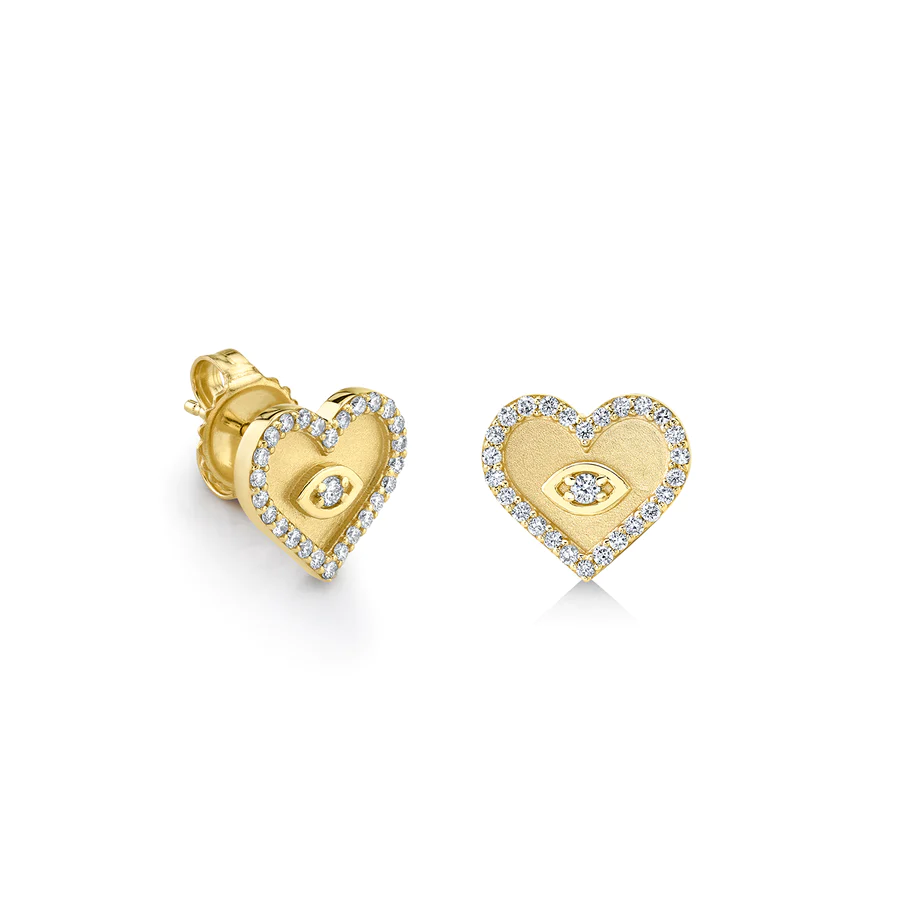 Heart-meets-eye stud in 925 silver with CZ sparkle, gold plating, and hypoallergenic comfort. A blend of protection and love, perfect for stacking.