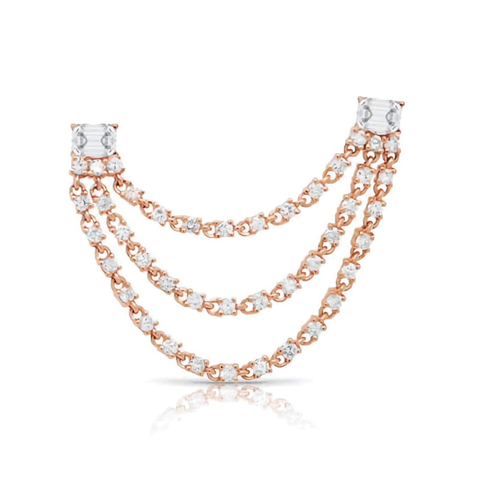 925 Sterling Silver baguette CZ drop link earrings with 14K Gold or Rose Gold plating. Hypoallergenic, lightweight, and bold in statement design.