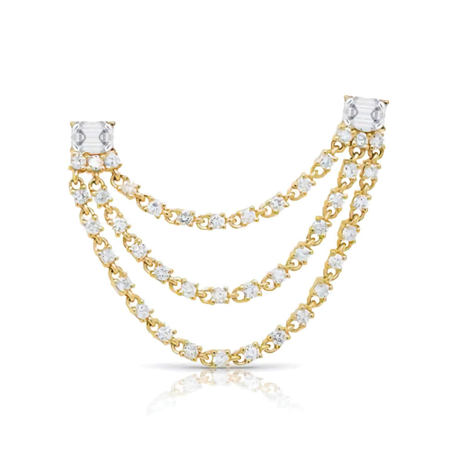 Strikingly sleek and effortlessly glamorous, the 925 Silver Double Baguette Statement Diamond Drop Link Earrings from Swarish Jewels are made to impress. Crafted from high-quality 925 Sterling Silver and coated with thick, durable 14K Gold or Rose Gold plating, these earrings offer an elegant blend of luxury and lasting shine.