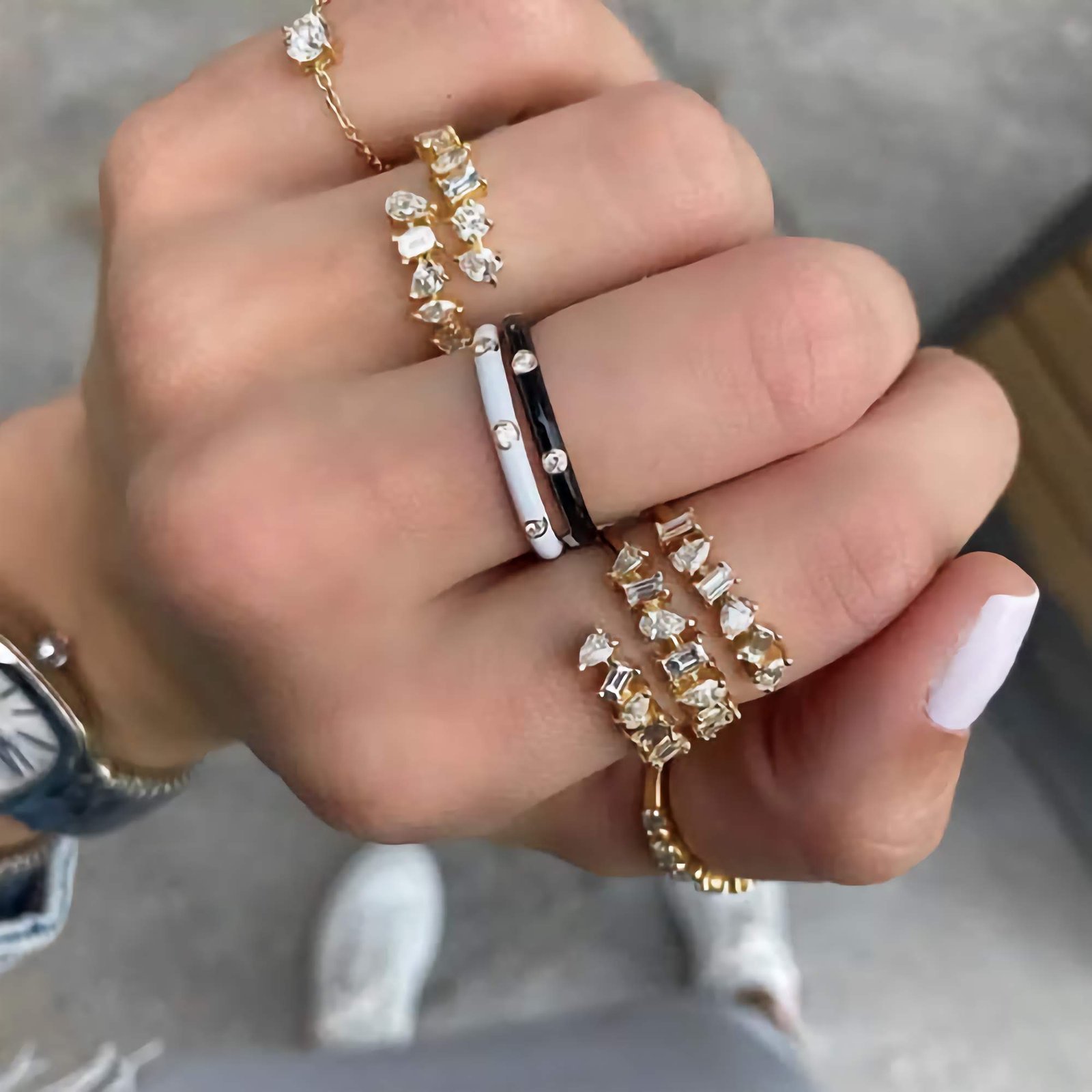 Nickel-free and hypoallergenic, the ring is gentle on sensitive skin and ideal for extended wear. Whether styled as a solo statement or paired with complementary rings, the Double Coil Multi-shape Diamond Band delivers a perfect mix of elegance and boldness.