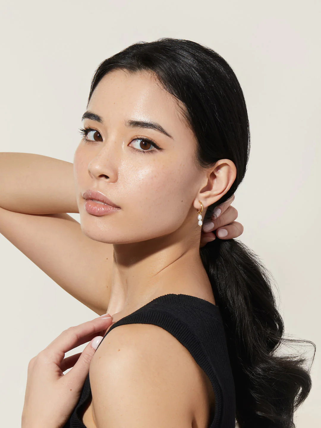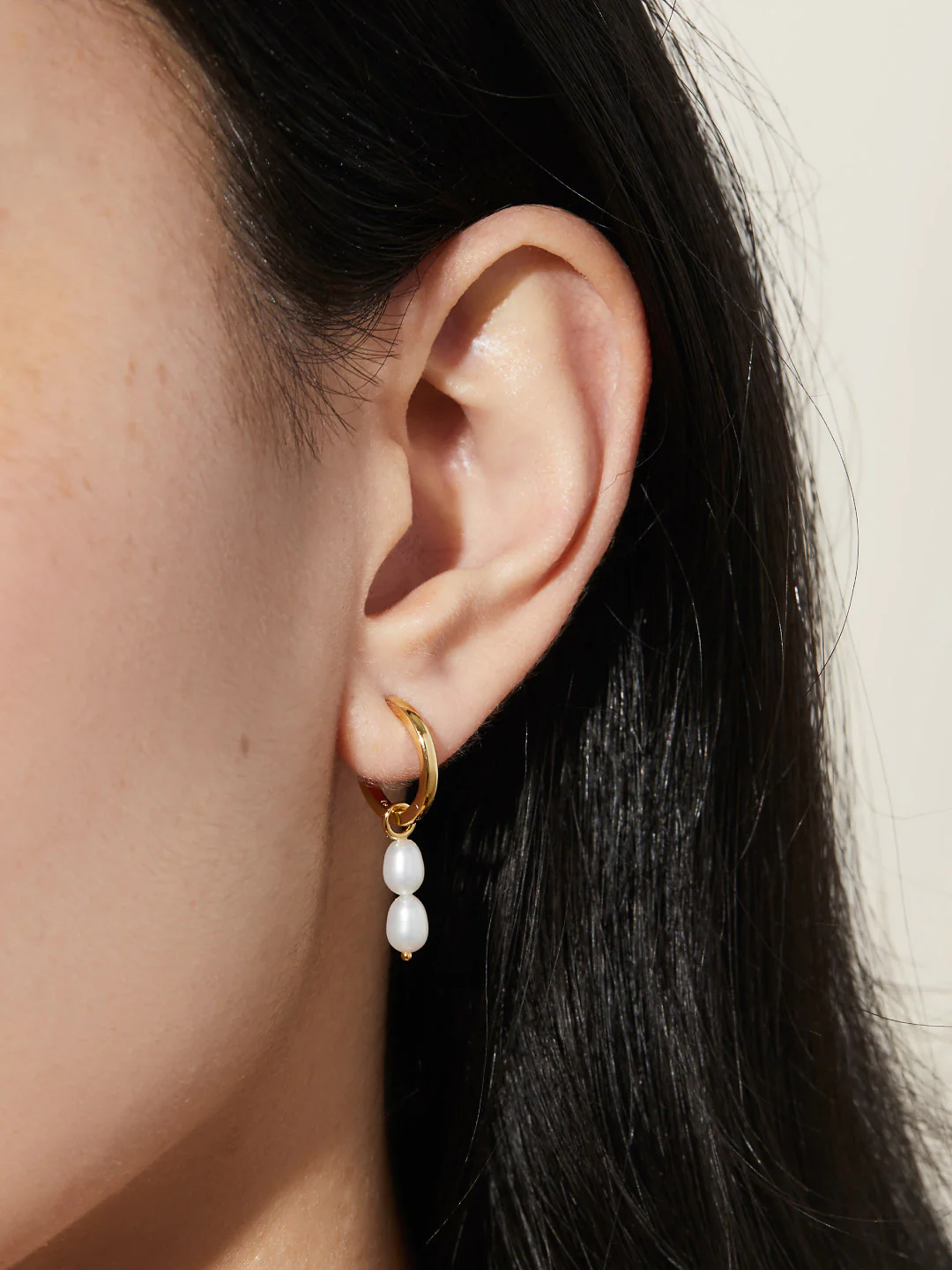 925 sterling silver Double Frida Hoops with Swarovski pearls. Finished with thick 14K gold or rose gold plating. Hypoallergenic. Ships in 7–8 business days.