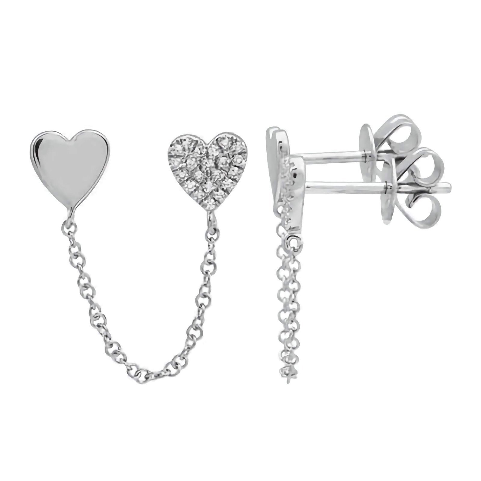 925 Silver Double Heart Solid and Diamond Chain Earring