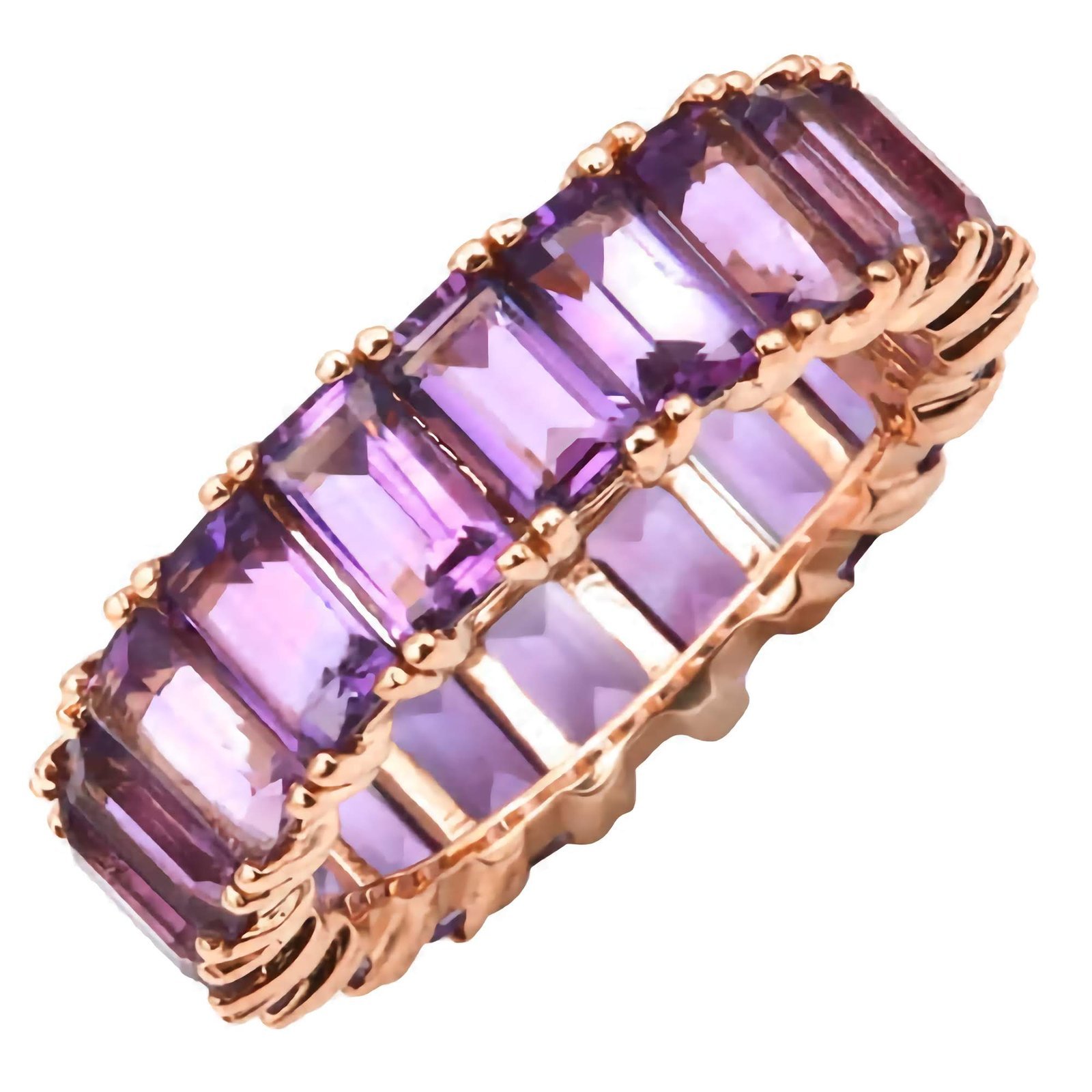 The Emerald Cut Amethyst Eternity Silver Band is stunning. The amethysts are vibrant and well-set.