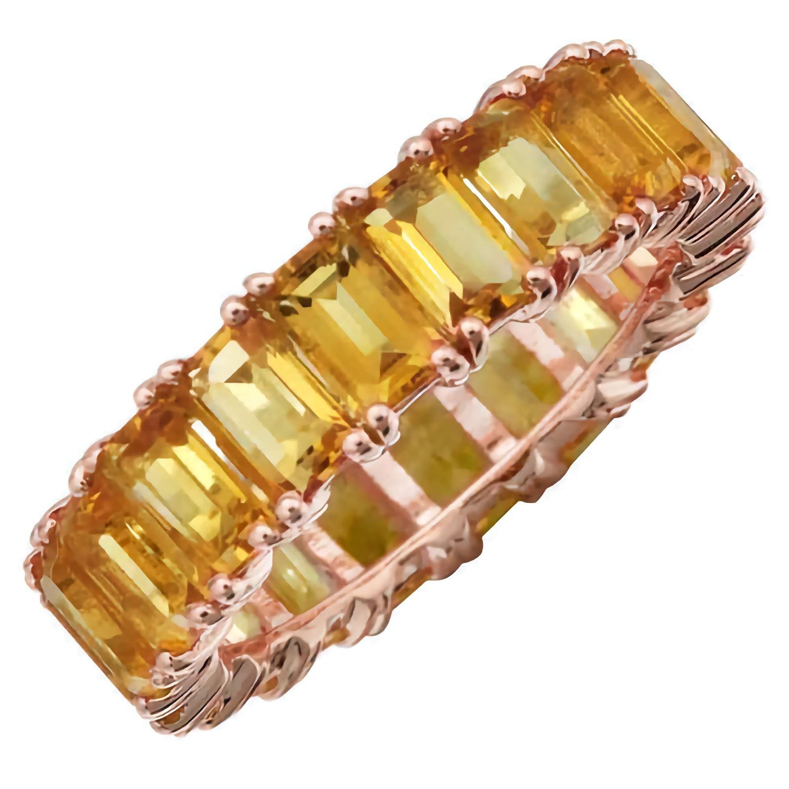 The band features a continuous circle of emerald-cut Cubic Zirconia stones in a golden citrine hue—symbolizing happiness, abundance, and positive energy. Each stone is precisely cut and expertly set to create a seamless, radiant flow of color and light. The eternity design not only adds beauty but also represents enduring love and infinite elegance.