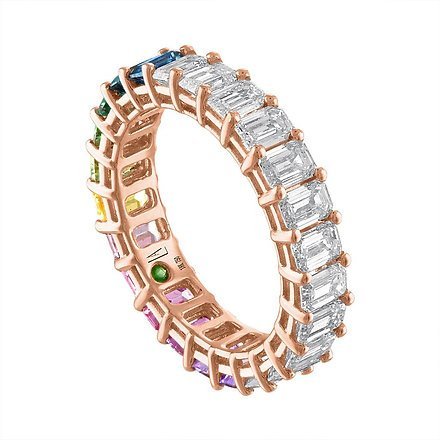 I’m very happy with my purchase. The Emerald Cut Multicolor/Diamond Eternity Band is stylish, well-made, and versatile.