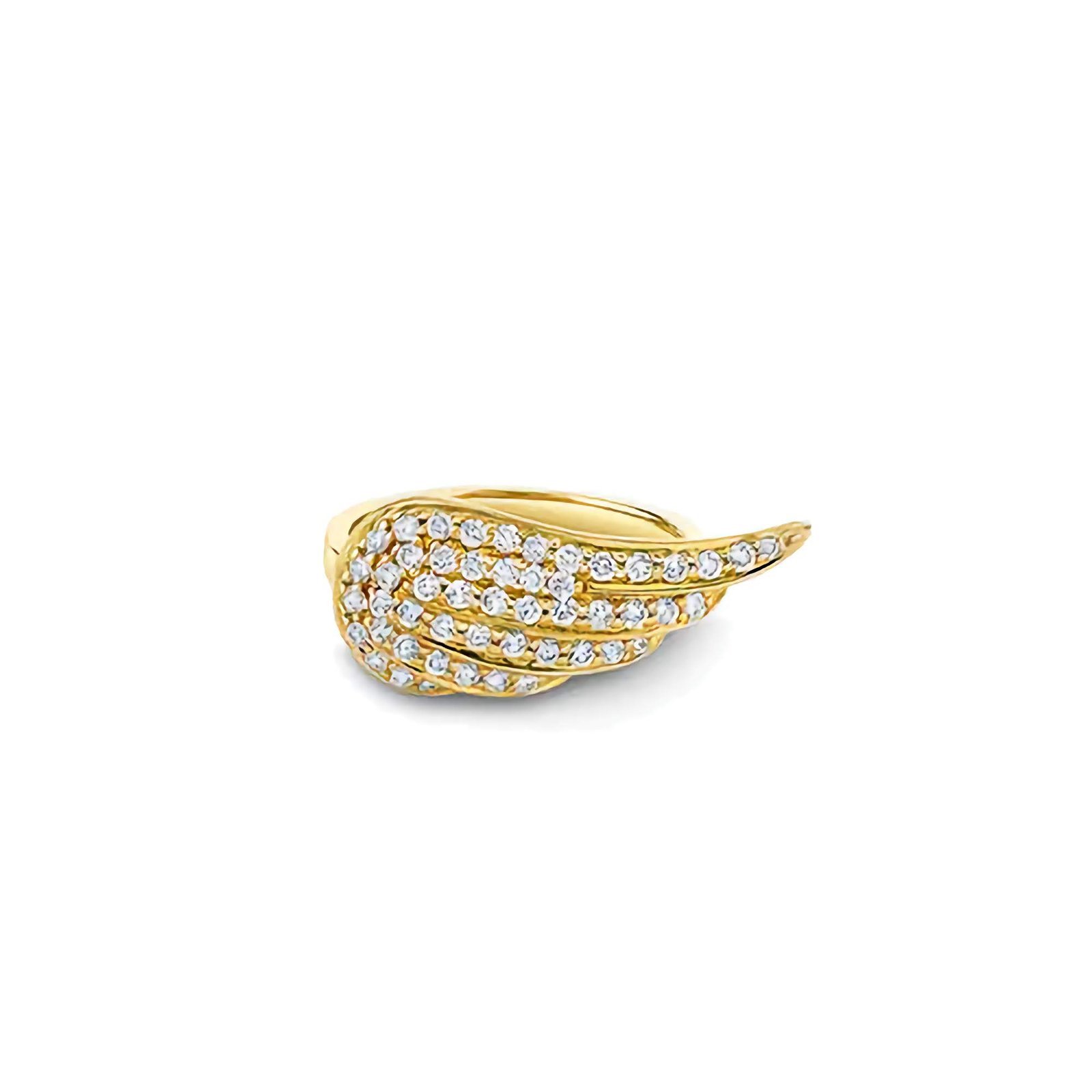 Angel wing ring in 925 sterling silver with sparkling CZ and 14K Gold or Rose Gold plating. Hypoallergenic and ships in 7–8 business days.