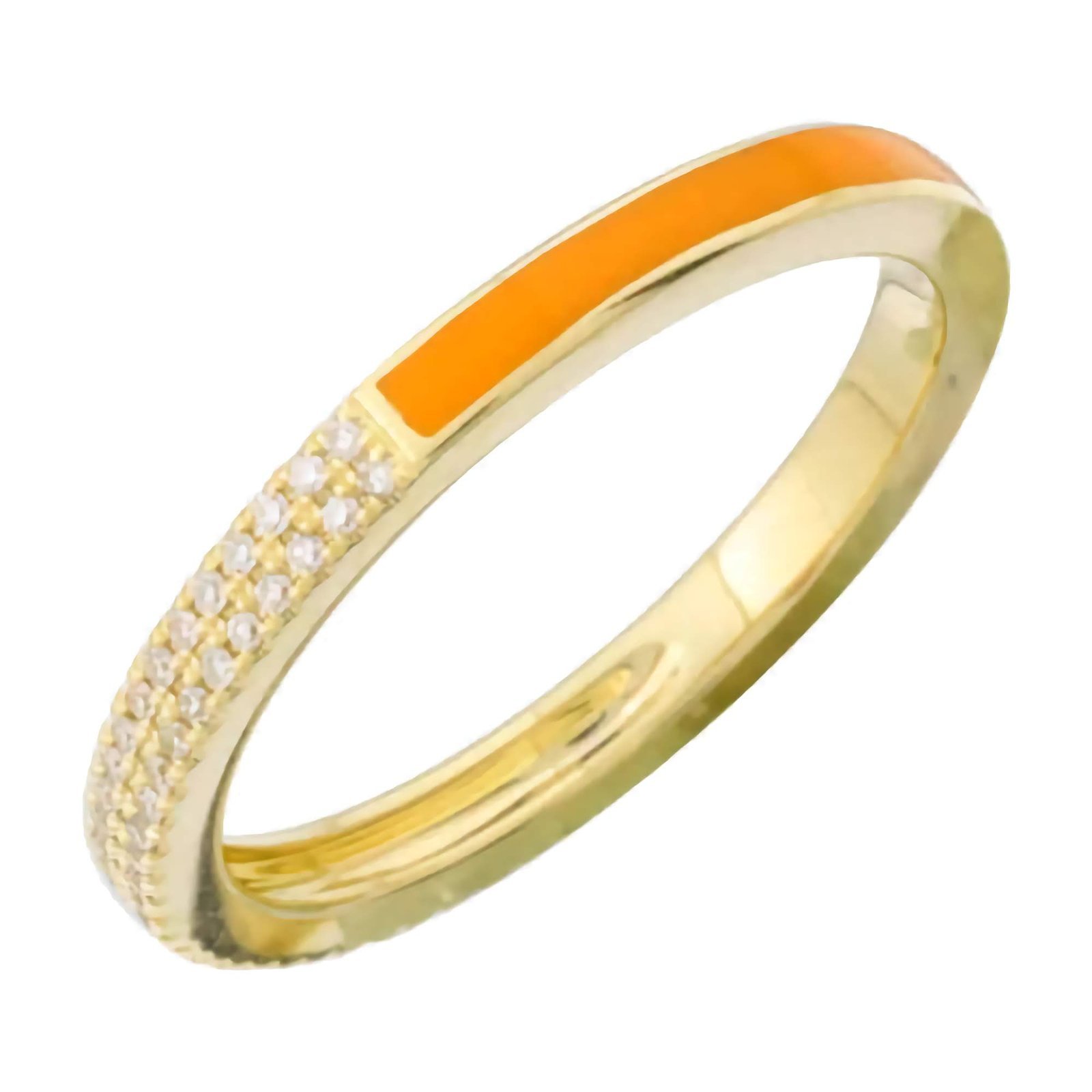 I love the design of this ring. The combination of enamel and pave diamonds is gorgeous, and it looks great on its own or stacked with other rings. Very happy with my purchase.