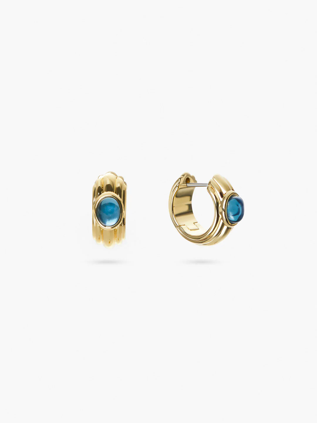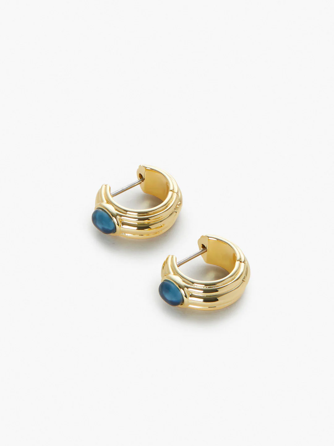 925 sterling silver Kinsley hoops with sparkling cubic zirconia. Finished with thick 14K gold or rose gold plating. Hypoallergenic. Ships in 7–8 business days.