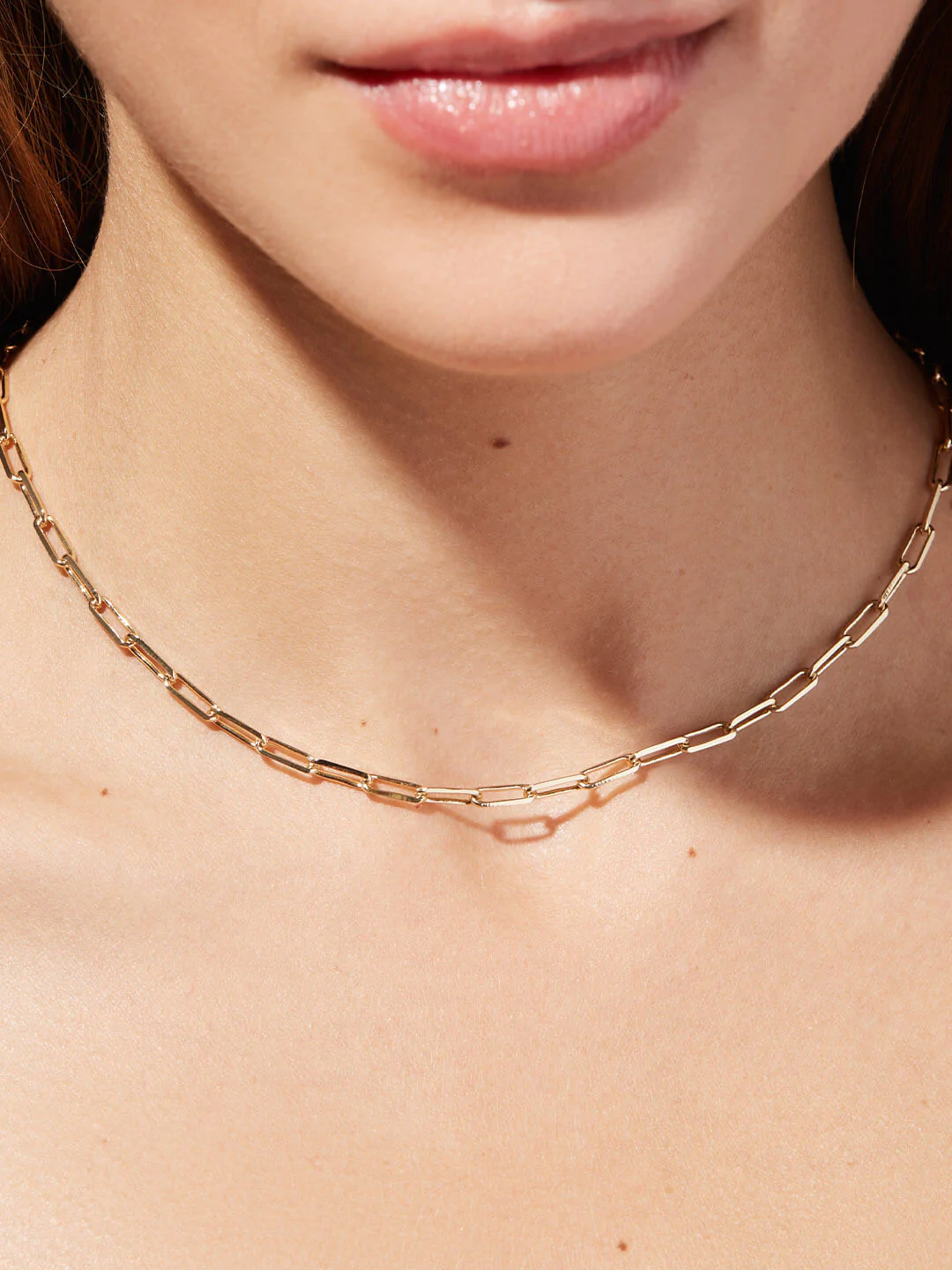 925 silver bold chain necklace with CZ accents, finished in 14K gold or rose gold. Hypoallergenic, nickel-free, and made to stand out.