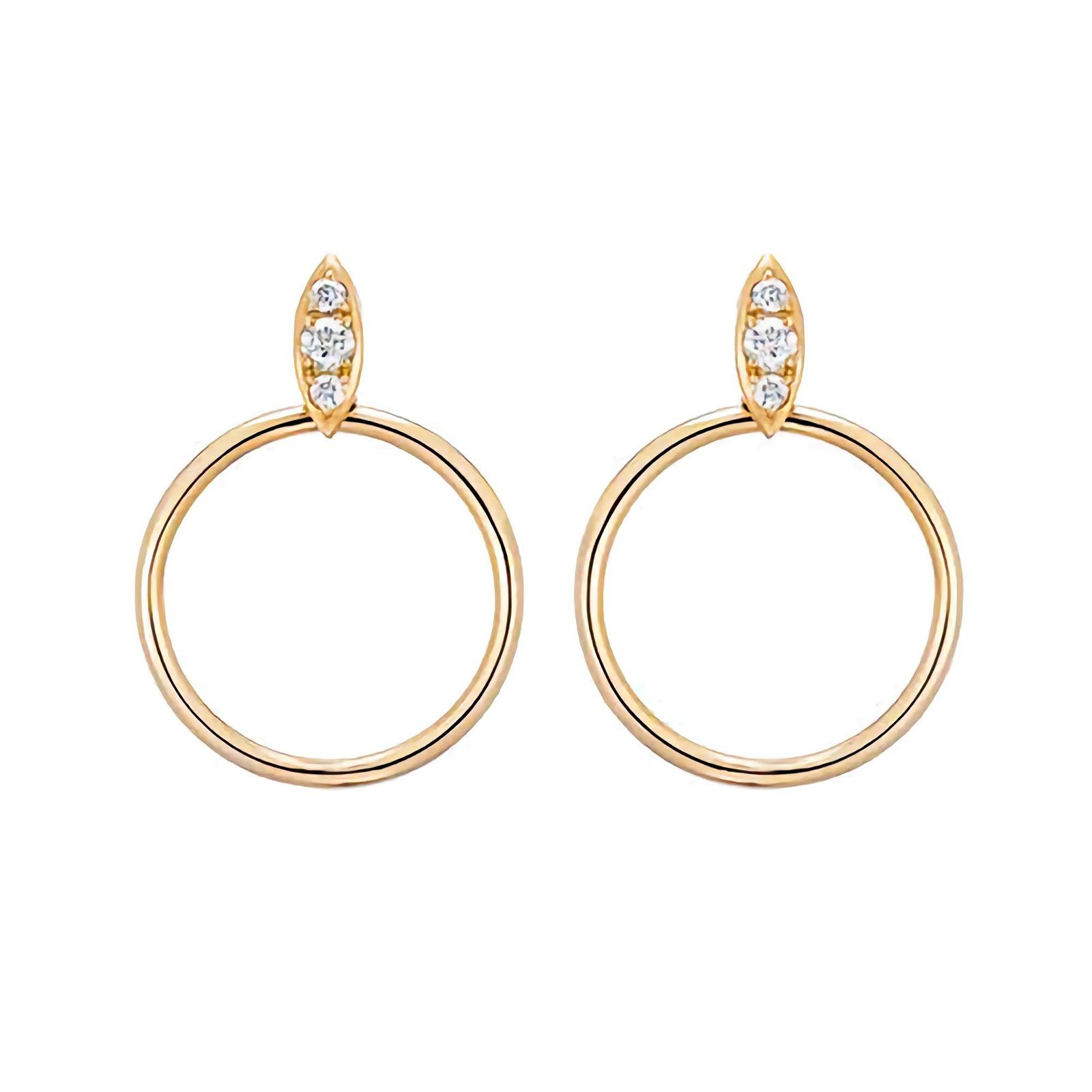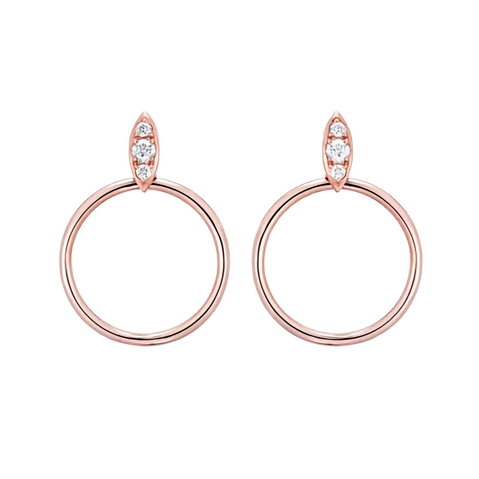 Elegant CZ-studded hoop earrings in 925 silver with 14K Gold or Rose Gold plating. Hypoallergenic and ships in 7–8 business days.
